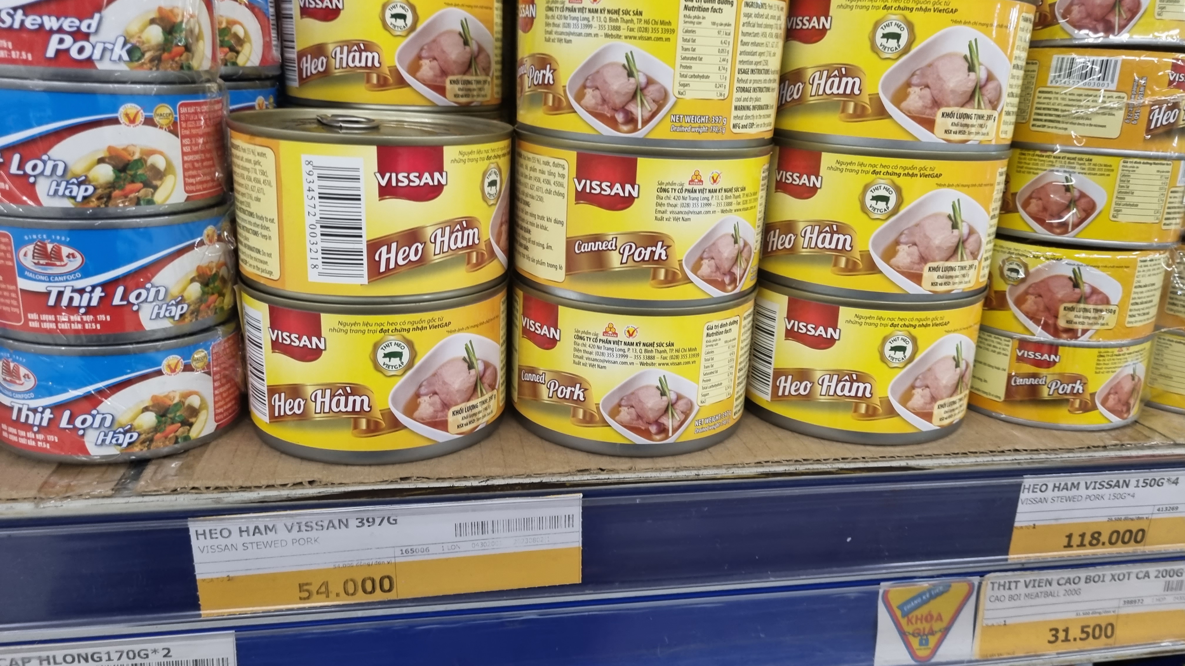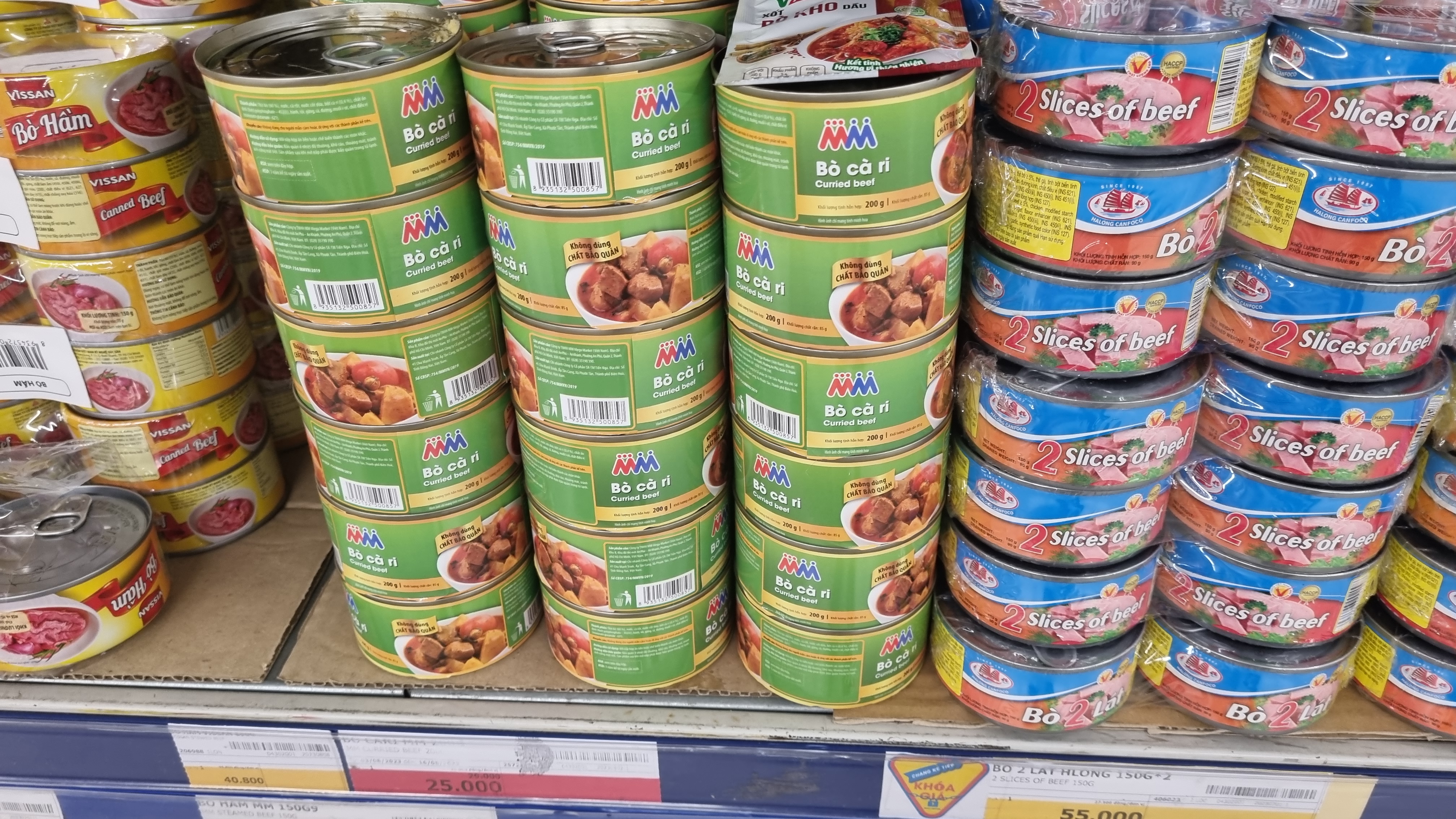 그런데 종류는 정말 많아요 돼지고기, 소고기, 닭고기, 생선 정말 수많은 종류의 통조림들이 존재를 하며 여행을 하며 술안주로 먹기 좋을 거 같아 종류별로 줏어서 케리어에 넣고 다니면서 먹어 보았는데 베트남은 물가가 저렴하니 통조림 드시지 마시고 밖에서 음식을 사드시거나 배달을 시켜 드시면 좋을거 같아요. 통조림이라서 바로 까서 먹을 수는 있는데 정말 별로 맛이 없어서 실망이 큽니다.