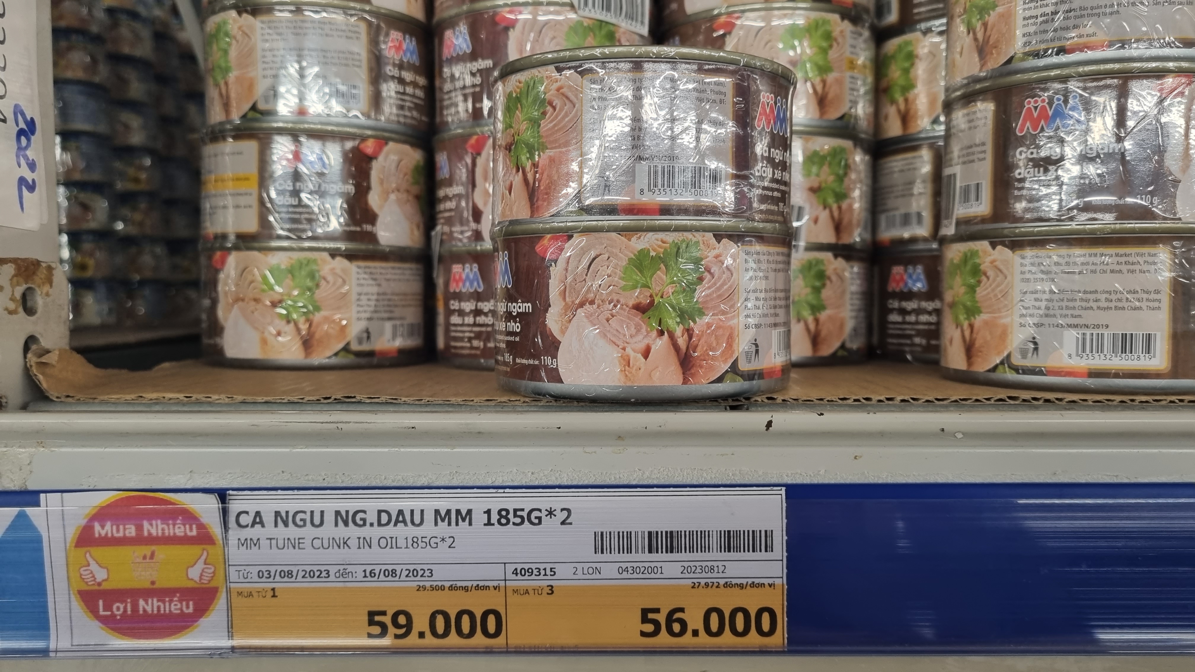 참치캔입니다. 처음에 가격보고 잘못 적혀 있는 건가 싶었어요 베트남에서 쌀국수 한 그릇 사먹을 때 저렴하면 2만동 3만동이면 쌀국수 한그릇을 먹을수 있어요 우리나라로 치면은 국박 한그릇 먹는 개념인거죠 한국에서 순대 국밥 먹을때 저렴하게 먹어서 7000원에 먹었다 그러면 저렴하게 먹은 편이겠죠? 다시 베트남으로 넘어와서 쌀국수 2그릇 가격입니다. 국밥 두 그릇 가격인 겁니다. 베트남에서 참치는 굉장히 고급 음식인 거 같네요