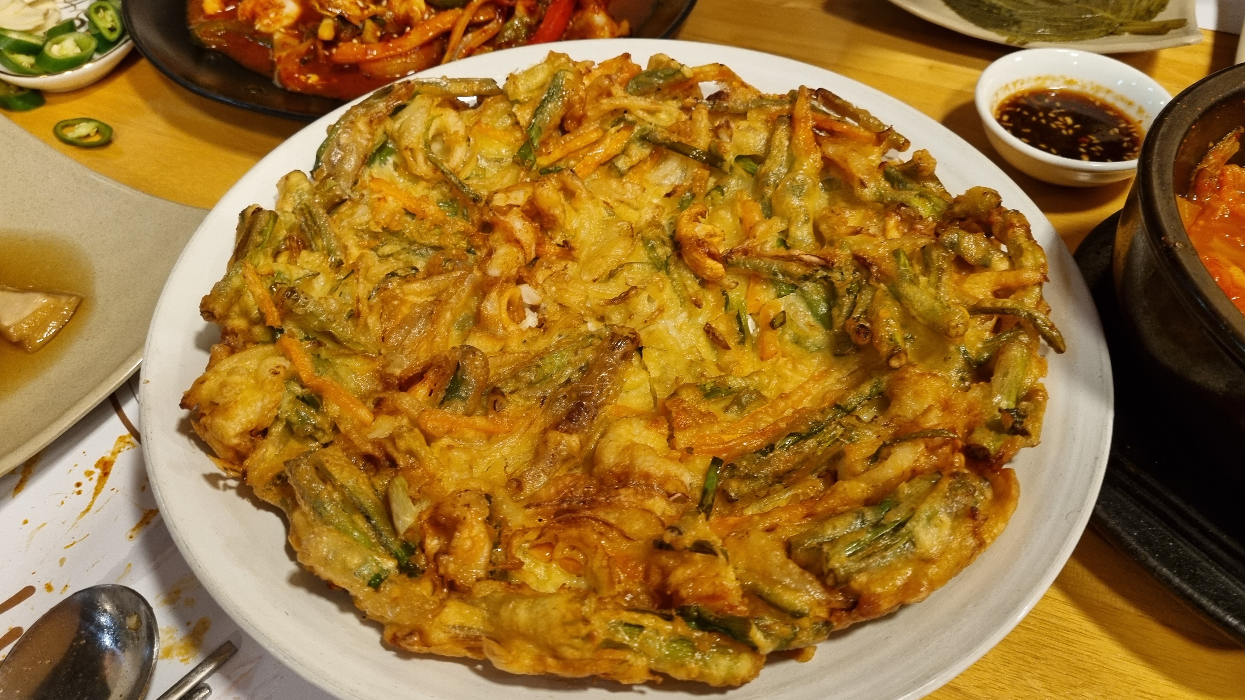 술안주로 재격인 파전까지 나와주었네요 한국을 나온 지 그리 오래된 건 아니지만 오랜만에 먹는 한국음식에 배부르게 먹고 취해서 들어왔습니다.