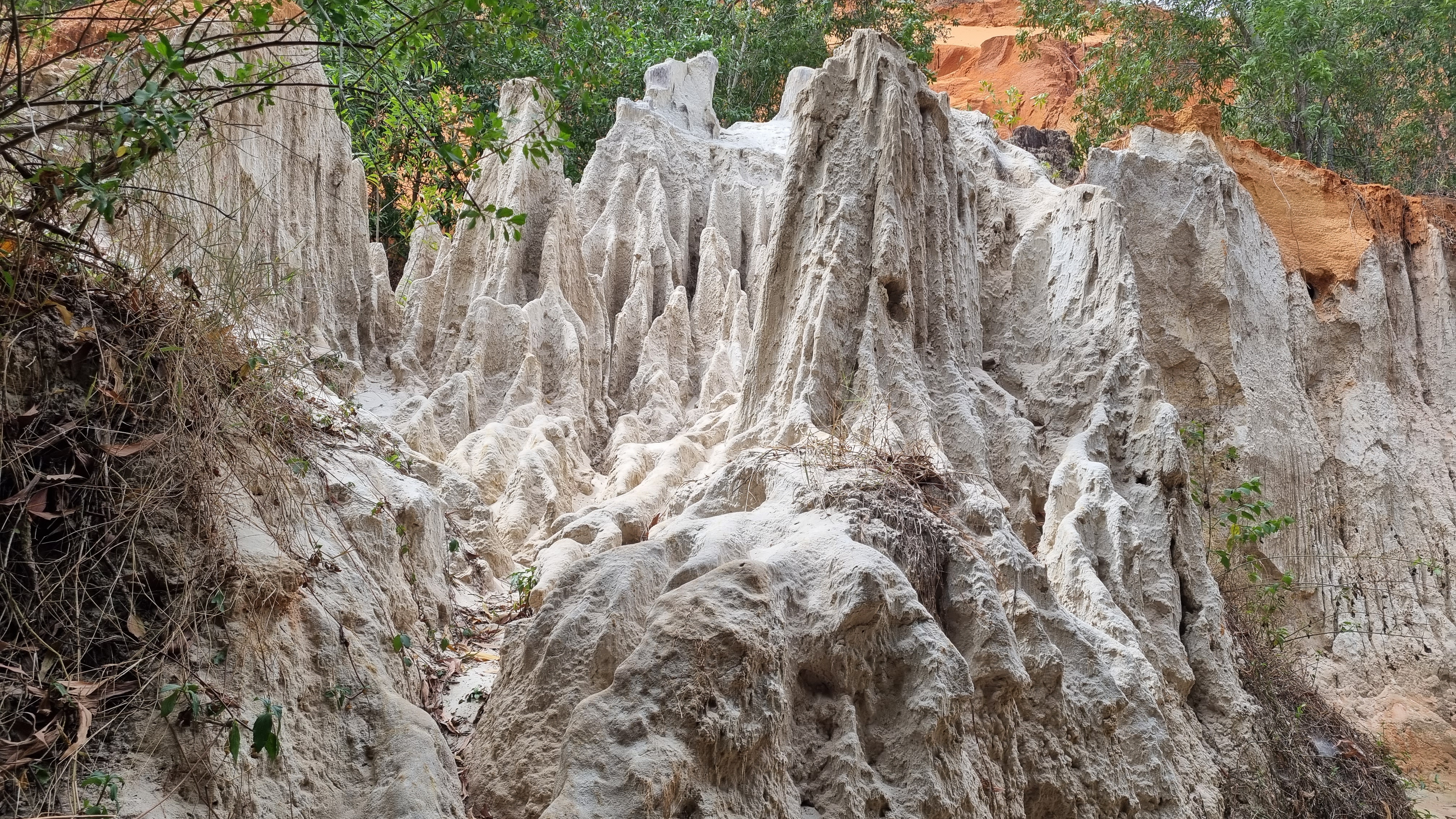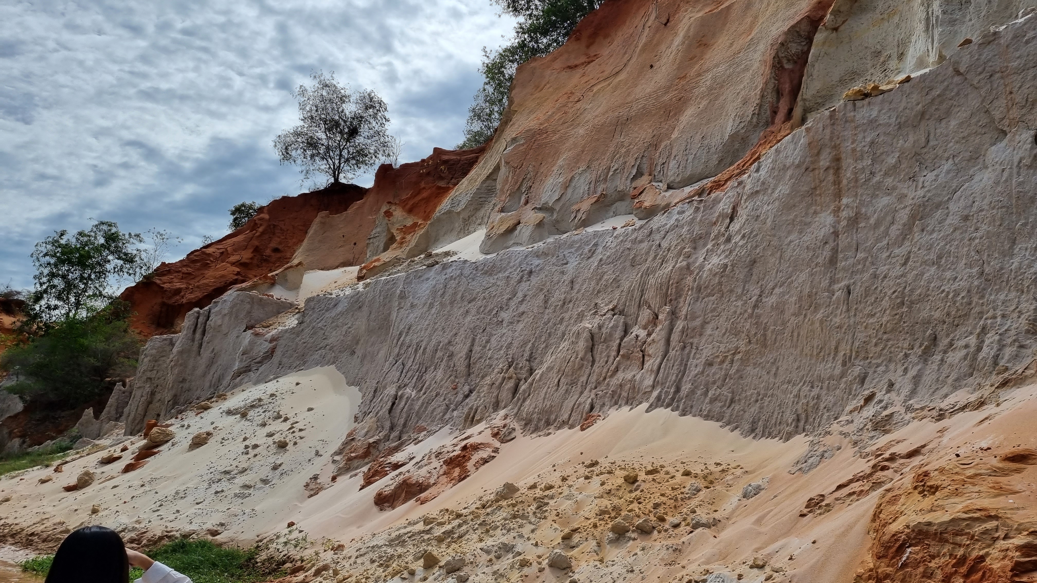 이런 지형이 만들어 진것은 무이네에는 바람이 많이 불고 바람에 의해 날아온 모래들이 쌓이고 쌓여서 돌처럼 압축이 되고 그 돌들이 비가 내리면 깎아지고 물에 흘러내리면서 계곡이 생성되었습니다. 그래서 이곳은 이번에 와서 구경을 하고 난 후 다음번에 다시 오면 조금씩 달라지는 모습을 볼 수 있습니다.